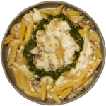 440 TLFırınlanmış penne makarna , mozzarella, mantar, tavuk ve krema ile